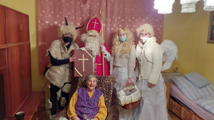 A protože nemáme nikdy od nápadu k jeho realizaci daleko, v pátek 3. 12. vyrazil Mikuláš, čert a dva andělé k našim klientům. Trošku s obavou, co na to budou říkat. Hned po první návštěvě bylo ale jasné, že to byl ten nejúžasnější nápad, co jsme kdy měly. Tak rozzářené oči a upřímný úsměv nemají snad ani malé děti. Velké poděkování patří mým kolegyním, které si rozdělily službu mezi sebe a my mohly v převleku vyrazit.