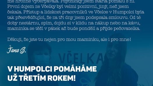 - předáme kontakty na dalšími instituce, které mohou v péči o Vašeho blízkého pomoci.